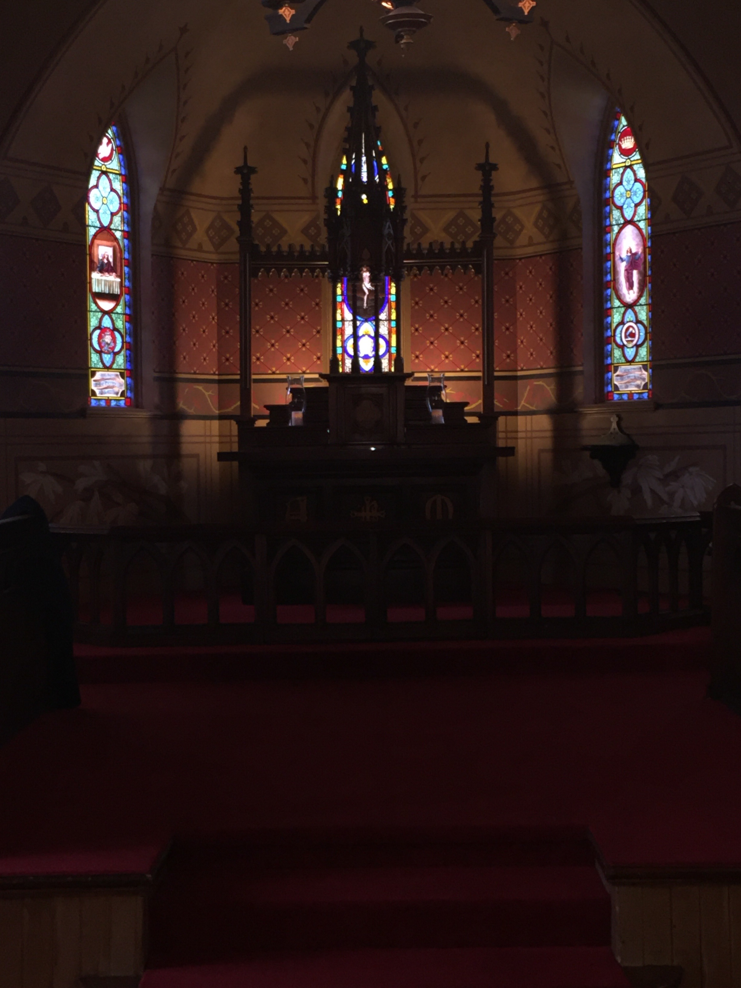 It’s stunning, my pictures here don’t do it justice. It’s not the Sistine Chapel, but its surely isn’t a “modern American Church building.” An Altar up front that the priests would offer Eucharist facing away from the congregation. Ornate woodworking. Vibrant colors. Solemnity.